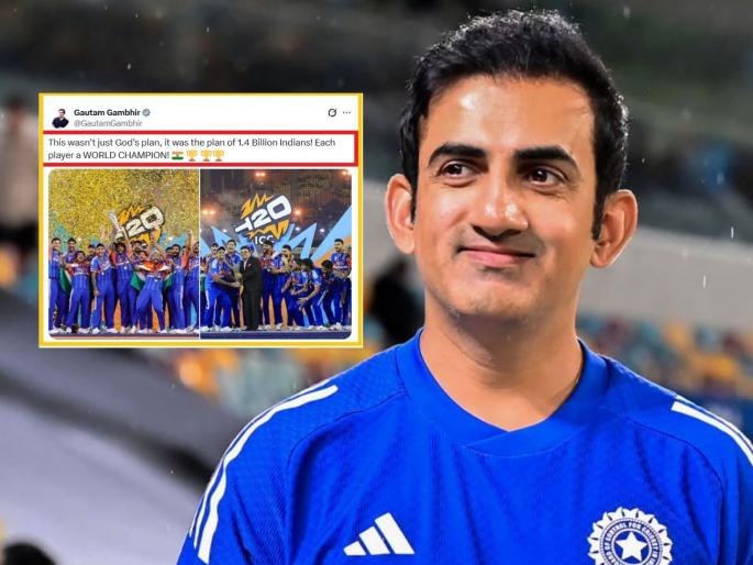 गौतम गंभीर यांनी एक्स अकाउंटवरुन वर्ल्ड चॅम्पियन संघातील खेळाडूंचा फोटो शेअर करताना लिहिलंय की, "ही फक्त देवाची योजना (God's plan) नव्हती. तर ही १४० कोटी भारतीयांची योजना होती. संघातील प्रत्येक खेळाडू वर्ल्ड चॅम्पियन आहे." सोशल गंभीर यांची ही पोस्ट तुफान व्हायरल होताना दिसत आहे.