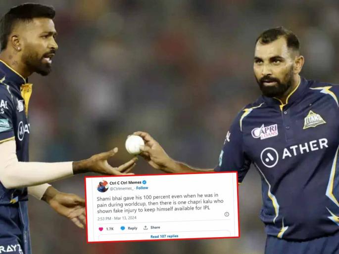 पोस्टला उत्तर देताना एका यूजरने लिहिले की, शमी दुखापत असूनही वर्ल्ड कप खेळत होता, त्यानंतर एका खेळाडूने आयपीएलमध्ये खेळण्यासाठी वर्ल्ड कपदरम्यान दुखापत झाल्याचे नाटक केले. युजरने येथे हार्दिक पांड्याला लक्ष्य केले. पोस्टमध्ये असे लिहिले आहे की, 'शमी भाईने वर्ल्ड कपदरम्यान वेदना होत असतानाही त्याचे १०० टक्के योगदान दिले, त्यानंतर एक छपरी, आहे ज्याने स्वत:ला आयपीएलसाठी उपलब्ध ठेवण्यासाठी दुखापतीचा बनाव केला.'