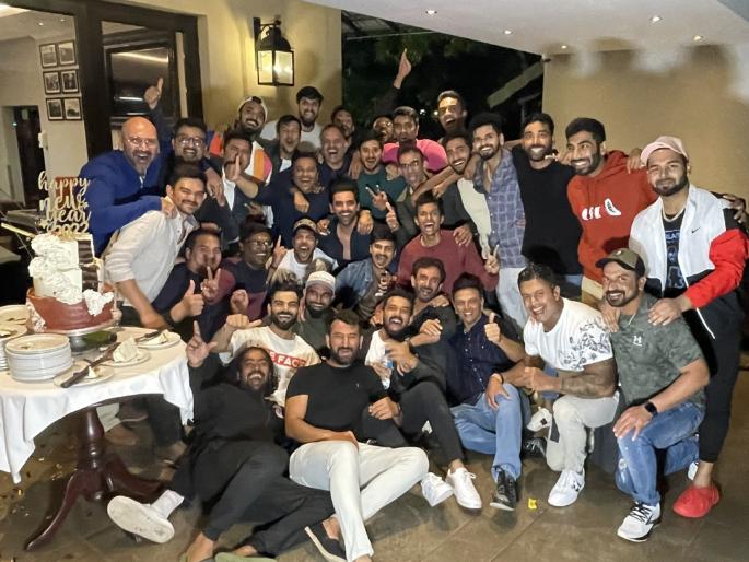 Rahul Dravid Welcomes New Year with Virat & Team India: भारतीय संघाने सेंच्युरियनच्या मैदानावर इतिहास घडवला. त्या मैदानावर दक्षिण आफ्रिकेला हरवणारा भारत हा पहिला आशियाई संघ ठरला. या दमदार विजयानंतर भारतीय संघाने सरत्या वर्षाला निरोप देतानाच नव्या वर्षाचं जल्लोषात स्वागत केलं. महत्त्वाची बाब म्हणजे, भारतीय संघाचे मुख्य प्रशिक्षक राहुल द्रविड, फलंदाजी प्रशिक्षक विक्रम राठोड आणि इतर कोचिंग स्टाफदेखील विराट आणि कंपनीसोबत नववर्षाच्या सेलिब्रेशनसाठी दाखल झाला. सर्वांनी एकत्रितपणे मिळून मिसळून नववर्षाचे जंगी स्वागत केले.