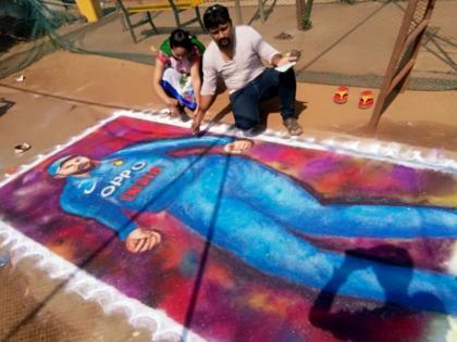 महाजन यांनी वायले क्रिकेट मैदानात ही रांगोळी साकारली आहे. रविवारी दुपारी ४ वाजता त्यांनी रांगोळी काढण्यास सुरूवात केली. सुमारे पाच तासात त्यांनी ही रांगोळी रेखाटली.