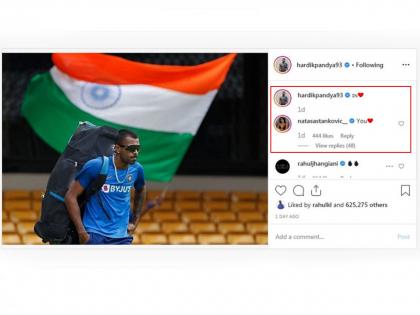 पण, हार्दिकनं रविवारी शेअर केलेल्या फोटोत मी प्रेमात पडलोय, अशी पोस्ट लिहिली. त्यावर नताशानं त्वरित तुझ्याच प्रेमात असे उत्तर दिले.