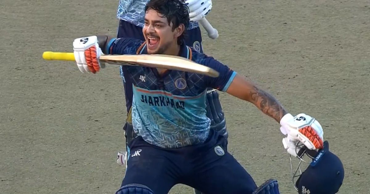 Web Summary : Ishant Kishan smashed a blazing century in the SMAT final, setting records. He reached his fifty in 24 balls and his century in 45. Kishan became only the second player to score a century in the final, celebrated with a Pushpa-style gesture.