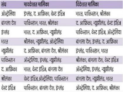 दोन वर्षांत इंग्लंड सर्वाधिक २१ तर भारत १९ सामने खेळणार आहे. ऑस्ट्रेलिया १८ तसेच द. आफ्रिका १५ सामने खेळेल. डब्ल्यू टीसीचे पहिले सत्र विजेत्या न्यूझीलंडच्या वाट्याला १३ सामने येतील. वेस्ट इंडिज आणि श्रीलंका संघ प्रत्येकी १३ तर पाकिस्तान संघ १४ सामने खेळेल. बांगला देशला १२ सामने खेळायचे आहेत.