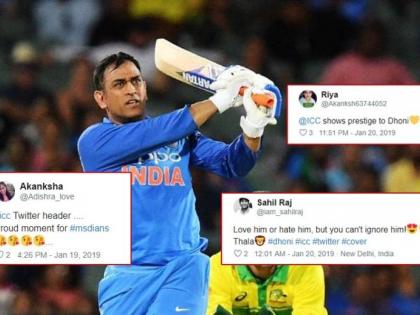 आयसीसीने धोनीच्या या नेत्रदिपक कामगिरीची दखल घेतली आहे. आपल्या ट्विटर हँडलच्या कव्हर पेजवर आयसीसीने धोनीला जागा दिली आहे. धोनीच्या चाहत्यांनाही ही गोष्ट चांगलीच रुचली आहे. त्यामुळे त्यांनीही या गोष्टीचे स्वागत केले आहे. काही जणांनी तर, धोनीवर आपले प्रेम व्यक्त केले आहे. काही जणांनी तर धोनीला कुणीही नजरअंदाज करू शकत नाही, असेही लिहिले आहे.