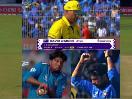 ICC ODI World Cup India vs Australia Live Marathi : भारतीय संघाला वन डे वर्ल्ड कप स्पर्धेच्या पहिल्या सामन्यात ऑस्ट्रेलियाच्या डेव्हिड वॉर्नरने हैराण केले होते. जसप्रीत बुमराहने तिसऱ्या षटकात धक्का दिल्यानंतर वॉर्नर व स्टीव्ह स्मिथ या जोडीने ऑसींचा डाव सावरला. वॉर्नरने या सामन्यातून वन डे वर्ल्ड कप स्पर्धेत सर्वात कमी इनिंग्जमध्ये १००० धावांचा टप्पा ओलांडला आणि सचिन तेंडुलकरच्या नावावर असलेला विक्रम मोडला. अर्धशतकाच्या जवळ आलेल्या वॉर्नरला फिरकीपटू कुलदीप यादवने ( Kuldeep Yadav) बाद केले. कुलदीपच्या चेंडूवर वॉर्नर फसला अन् त्याने मारलेला चेंडू सरळ गोलंदाजाच्या हातात जाऊन बसला.
