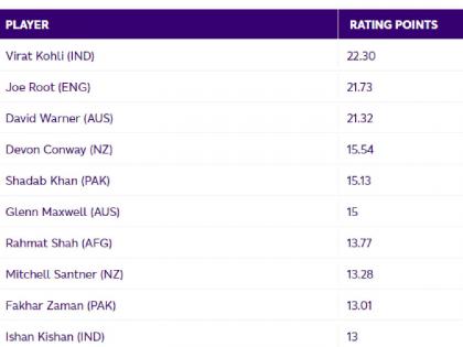 वर्ल्ड कप स्पर्धेतील सर्व संघांचे ३ सामने झाले आहेत आणि सामन्यांद्वारे वाचवलेल्या धावा व प्रतिस्पर्धी संघावर दबाव निर्माण करण्याच्या रेटिंगच्या यादीत विराट अव्वल स्थानावर आहे आणि त्याच्या एकूण २२.३० गुणांमुळे तो वर्ल्ड कप स्पर्धेत क्षेत्ररक्षणाच्या प्रभावासाठी अव्वल स्थानावर आहे. कोहलीला या बाबतीत इंग्लंडचा माजी कर्णधार जो रूट ( ४ झेल) आणि वॉर्नर ( ५ झेल) यांच्याकडून कडवी टक्कर मिळतेय.