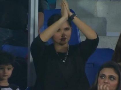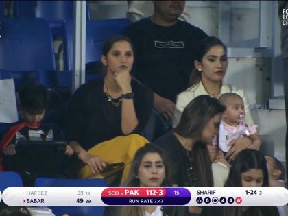 पाकिस्तान आणि स्कॉटलंडमध्ये झालेला सामना पाहण्यासाठी त्याची पत्नी सानिया मिर्झा हीसुद्धा तिच्या मुलासह उपस्थित होती. तसेच शोएब मलिकच्या प्रत्येक फटक्यानंतर टाळ्या वाजवून प्रोत्साहन देत होती. दरम्यान, आता सानियाचे फोटो सोशल मीडियावर व्हायरल होत आहेत.