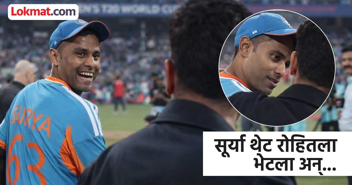ICC T20 World Cup 2026 Suryakumar Yadav And Rohit Sharma Viral Video : सूर्यकुमार यादव आणि रोहित शर्मा ही जोडी भारतीय क्रिकेट चाहत्यांच्या गळ्यातील ताईत आहे. या दोघांमधील कमालीची बॉन्डिंग नेहमीच चर्चेचा विषय ठरते. भारतीय संघाने अमेरिकेविरुद्धच्या सामन्याने यंदाच्या टी-२० वर्ल्ड कप मोहिमेची सुरुवात केली. या लढतीसाठी हिटमॅन रोहित शर्माही वानखेडे स्टेडियमवर उपस्थित होता. गत हंगामात भारताला चॅम्पियन केल्यानंतर रोहित शर्मानं टी-२० आंतरराष्ट्रीय क्रिकेटमधून निवृत्ती घेतली होती. ICC ने यंदाच्या हंगामासाठी रोहित शर्माची ‘ब्रँड अँबेसिडर’ म्हणून नियुक्ती केली आहे. वानखेडेच्या मैदानावर सामन्यापूर्वी, नाणेफेकीआधी सूर्यानं धावत येत हिटमॅन रोहितची भेट घेतली. एवढंच नव्हे, तर त्याच्याकडून सल्लाही विचारला. हाच क्षण कॅमेऱ्यात कैद झाला असून, हा व्हिडिओ सध्या सोशल मीडियावर चर्चेचा विषय ठरत आहे.