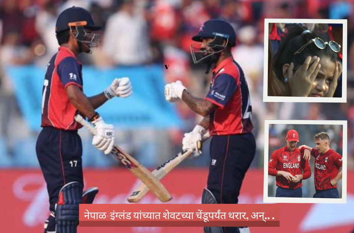 ICC T20 World Cup 2026 NEP vs ENG 5th Match :मुंबईतील वानखेडेच्या मैदानात इंग्लंड विरुद्ध नेपाळ यांच्यात रंगलेला सामना शेवटच्या चेंडूपर्यंत रंगतदार झाला. इंग्लंडने दिलेल्या १८५ धावांचा पाठलाग करताना नेपाळचा कर्णधार रोहित कुमार पौडेल आणि दीपेंद्र सिंह ऐरी यांनी दमदार भागीदारीच्या जोरावर संघाच्या विजयाच्या आशा पल्लवित केल्या होत्या. ही जोडी माघारी फिरल्यावर सामन्याची सूत्रे लोकेश बामनं आपल्या हाती घेतली. पण शेवटी अखेरच्या षटकात १० धावांचा बचाव करत सॅम कुरेन याने नेपाळच्या तावडीतून इंग्लंडची सुटका केली. नेपाळच्या संघाने ६ विकेट्सच्या मोबदल्या १८० धावांपर्यंत पोहचला. अवघ्या ४ धावांनी नेपाळच्या संघाची ऐतिहासिक विजयाची संधी हुकली.