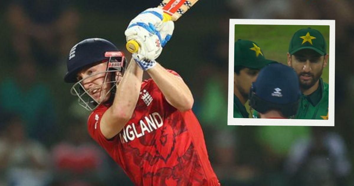 संघ अडचणीत असताना कर्णधार हॅरी ब्रूक तग धरून मैदानात नुसता उभा राहिला नाही तर त्याने आपल्या फलंदाजीतील खास नजराणा पेश केला. सॅम कुरनेच्या साथीनं पाचव्या विकेटसाठी फक्त २८ चेंडूत ४५ धावांची भागीदारी रचल्यावर ब्रूक आणि विल जॅक्स जोडी जमली. या दोघांनी सहाव्या विकेटसाठी ३१ चेंडूत ५२ धावांची भागीदारी रचत पाकिस्तानी गोलंदाजांचे खांदे पाडले. शतक झळकावल्यावर हॅरी ब्रूक माघारी फिरला.तो बाद झाल्यावर पाकिस्तानच्या संघाने काही विकेट्स मिळवल्या. पण शेवटी इंग्लंडने २ विकेट्स राखून विजय निश्चित करत सेमीच तिकीट पक्के केले.