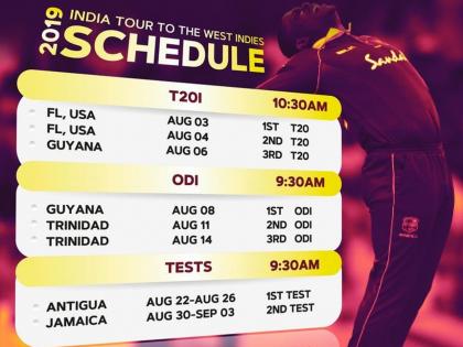मुंबई : वर्ल्ड कप स्पर्धा संपल्यानंतर भारतीय संघ वेस्ट इंडिज दौऱ्यावर जाणार आहे. आयसीसीच्या वर्ल्ड टेस्ट चॅम्पियनशीप ( कसोटी अजिंक्यपद स्पर्धा) स्पर्धे अंतर्गत भारतीय संघ 22 ऑगस्टपासून दोन कसोटी सामने खेळणार आहे. पाच आठवड्यांच्या या दौऱ्यात भारतीय संघ तीन ट्वेंटी-20 व तीन वन डे सामनेही खेळणार आहे. 22 ते 26 ऑगस्ट दरम्यान व्हिव्हियन रिचर्ड्स क्रिकेट ग्राऊंड, अँटीग्वा आणि 30 ऑगस्ट ते 3 सप्टेंबर दरम्यान जमैका येथील सबीना पार्कवर कसोटी सामना खेळवण्यात येईल.