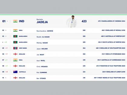 कसोटी अष्टपैलू खेळाडूंच्या यादीत फारसा बदल झालेला नाही. भारताचा रविंद्र जाडेजा अव्वल, रविचंद्रन अश्विन दुसऱ्या तर अक्षर पटेल एका स्थानाच्या बढतीसह सातव्या स्थानी विराजमान आहे.
