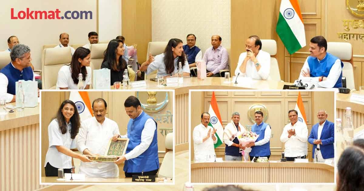 Maharashtra Govt Felicitates Smriti Mandhana Jemimah Rodrigues Radha Yadav With 2 Crore 25 Lakh : राज्याचे मुख्यमंत्री देवेंद्र फडणवीस आणि उप मुख्यमंत्री अजित पवार यांच्या हस्ते महिला क्रिकेट विश्वविजेत्या भारतीय संघाची उप कर्णधार स्मृती मानधना, जेमिमा रॉड्रिग्ज आणि राधा यादव यांचा मुंबईत खास सत्कार सोहळा पार पडला. शुक्रवारी मुंबईतील मुख्यमंत्र्यांच्या निवासस्थानी आयोजित समारंभात भारतीय महिला संघातील महाराष्ट्राच्या प्रमुख खेळाडूंसह संघाचे प्रशिक्षक आणि सपोर्ट स्टाफमधील सदस्यही उपस्थितीत होते.
