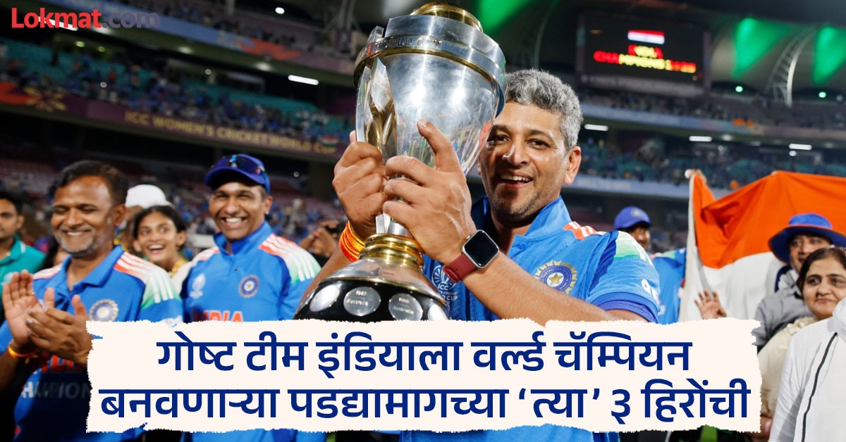 भारतीय संघाच्या विजयात प्रत्येकीनं मोलाचा वाटा उचलला साखळी फेरीतील लढतीत स्मृती मानधना आणि प्रतीका रावल या दोघींनी कमालीची कामगिरी करून दाखवत संघाला चांगली सुरुवात करुन दिली. गोलंदाजी अवघ्या १७-१८ सामन्यांचा अनुभव असणाऱ्या श्री चरणीसह दीप्ती शर्मा अडचणीत सापडलेल्या संघाच्या मदतीला धावली. नॉकआउट्समध्ये जेमिमा रॉड्रिग्ज आणि कर्णधार हरमनप्रीत कौरनं सेमी फायनलची मॅच गाजवली. फायनलमध्ये संघाचा भाग नसलेल्या शफालीनं वाइल्ड कार्ड एन्ट्री मारत विक्रमी कामगिरीसह संघासाठी बॉटिंग बॉलिंगमध्ये अविस्मरणीय कामगिरी बजावली. मेगा फायनलमध्ये अमनजोत कौरचा फिल्डिंगमधील सर्वोत्तम दर्जा हा भारतीय संघ तिन्ही स्तरावर परिपूर्ण असल्याची झलक दाखवणारा होता. एकंदरीत संघाचा भाग असलेल्या प्रत्येकीनं उपयुक्त योगदान देत ऐतिहासिक विजय साकार करण्यात मोलाची कामगिरी बजावली. एखादा पिक्चर ब्लॉकबस्टर ठरतो त्यावेळी हिरो अन् होरोईनची चर्चा होते. आपल्याकडे बऱ्याचा हिरोच भाव खातो. पण हिट शोमागे अनेकजणांची मेहनत असते. ही गोष्ट टीम इंडियाच्या बाबतीतही लागू होते. चला तर मग जाणून घेऊयात या साऱ्याजणींना त्रिसूत्री धोरणासह वर्ल्ड चॅम्पियन होण्यास तयार करणाऱ्या ३ पडद्यामागच्या हिरोंसदर्भातील खास गोष्ट