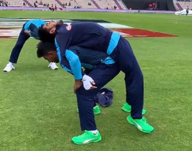लंडन, आयसीसी वर्ल्ड कप 2019 : इंग्लंडमध्ये सध्या विश्वचषक सुरु आहे. या विश्वचषकात प्रत्येक संघाला विजय मिळवायचा आहे. त्यामुळे प्रत्येक संघ कसून सराव करताना दिसत आहे. एका संघातील खेळाडू सामन्यापूर्वी एक व्यायामप्रकार करत होता. हा व्यायामप्रकार चाहत्यांना अजब वाटला आणि चाहत्यांनी त्यांची हुर्यो उडवली. या व्यायामाचा व्हिडीओ चांगलाच वायरल झाला असून चाहत्यांनी या खेळाडूंची चांगलीच खिल्ली उडवल्याचे पाहायला मिळाले आहे.