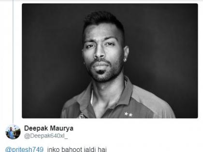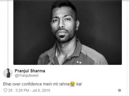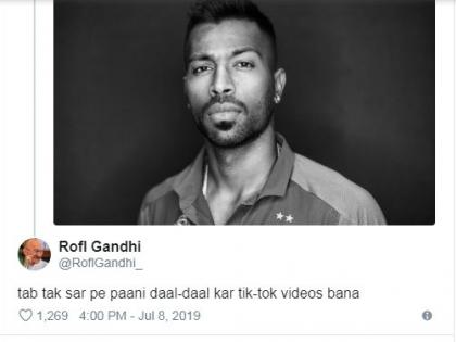 लंडन, आयसीसी वर्ल्ड कप 2019 : भारत आणि न्यूझीलंड यांच्यामध्ये उद्या उपांत्य फेरीचा सामना रंगणार आहे. या सामन्यासाठी भारतीय संघाने आज कसून सराव केला. पण काही दिवसांपूर्वी भारताचा अष्टपैलू खेळाडू हार्दिक पंड्याने एक 'टिक टॉक'चा व्हिडीओ पोस्ट केला होता. त्यानंतर आता सामन्याला काही तासांचा अवधी आहे, असे त्यानंतरच्या पोस्टमध्ये लिहिले आहे. या पोस्टवरून पंड्या ट्रोल झाला आहे.