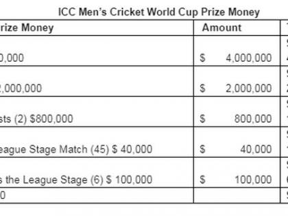 मुंबई, आयसीसी वर्ल्ड कप 2019 : आगामी वर्ल्ड कप स्पर्धेच्या जेतेपदासह विजयी संघाला मालामाल होण्याची संधी आहे. आंतरराष्ट्रीय क्रिकेट परिषदेने ( आयसीसी) या स्पर्धेसाठी 10 मिलियन डॉलर ( भारतीय किमतीत जवळपास 70 कोटी) रोख बक्षीस देणार असल्याचे जाहीर केले. यापैकी विजेत्या संघाला 4 मिलियन ( 28 कोट) मिळणार आहेत. आतापर्यंतच्या वर्ल्ड कप स्पर्धांमधील दिली जाणारी ही सर्वाधिक रक्कम आहे. हे 10 मिलियन डॉलर बक्षीस रकमेतील दोन मिलियन हे उपविजेत्या, तर उपांत्य फेरीत पराभूत झालेल्या संघांना प्रत्येकी 8 लाख डॉलर देण्यात येणार आहेत.
