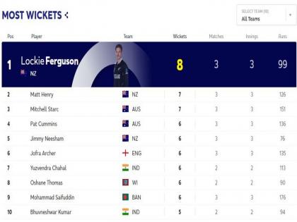 न्यूझीलंडचा जलदगती गोलंदाज लॉकी फर्ग्युसन आणि मॅट हेन्री यांनी अफगाणिस्तानविरुद्ध अनुक्रमे 5 व 4 विकेट्स घेतल्या. त्यामुळे एकूण आठ विकेटसह फर्ग्युसन अव्वल, तर हेन्री सात विकेटसह दुसऱ्या क्रमांकावर आहे. ऑस्ट्रेलियाविरुद्धच्या सामन्यात दोन विकेट घेत भारताच्या युजवेंद्र चहलने सातव्या स्थानी झेप घेतली. भुवनेश्वर कुमारनेही अव्वल दहांत जागा मिळवली. ऑस्ट्रेलियाविरुद्धच्या लढतीत त्यानं तीन विकेट घेतल्या होत्या.