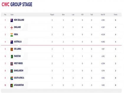 न्यूझीलंड संघाने गुणतालिकेत आपला दबदबा कायम राखला आहे. त्यांनी आतापर्यंत झालेल्या तीनही लढती जिंकून सहा गुणांसह अव्वल स्थान कायम राखले. इंग्लंड तीन सामन्यांत दोन विजयासह दुसऱ्या क्रमांकावर आहे. भारतीय संघाने कांगारूंवर विजय मिळवत तिसऱ्या स्थानी झेप घेतली, तर ऑस्ट्रेलियानं अव्वल चौघांत स्थान कायम राखले.