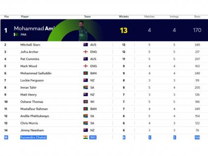 पाकिस्तान संघाची वर्ल्ड कपमधील कामगिरी साजेशी झाली नसली तरी त्यांचा गोलंदाज मोहम्मद आमीरनं आपलं नाणं खणखणीत वाजवलं आहे. त्यानं 4 सामन्यांत 13 विकेट्स घेत अव्वल स्थान पटकावलं आहे. ऑस्ट्रेलियाचा मिचेल स्टार्कच्या नावावरही 13 विकेट्स आहेत, परंतु त्यानं 5 सामने खेळले आहेत. भारताचा एकही गोलंदाज टॉप टेन मध्ये नाही. युजवेंद्र चहल 15व्या क्रमांकावर आहे.