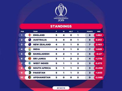 लंडन, आयसीसी वर्ल्ड कप 2019 : इंग्लंड आणि अफगाणिस्तान सामन्यात चौकार-षटकारांची आतषबाजी पाहायला मिळाली. इंग्लंडचा कर्णधार इयॉन मॉर्गननं 71 चेंडूंत 148 धावांची खेळी केली. त्यात चार चौकार व 17 षटकार खेचून विक्रम नावावर केला. इंग्लंडच्या 397 धावांच्या प्रत्युत्तरात अफगाणिस्तानला 8 बाद 247 धावा करता आल्या. या विजयानंतर इंग्लंडने गुणतालिकेत 8 गुणांसह अव्वल स्थान पटकावले आहे. अव्वल चार क्रमवारी बदलता संघ तेच आहेत.. ऑस्ट्रेलिया ( 8), न्यूझीलंड ( 7) आणि भारत (7) हे अव्वल चौघांत आहे. पण, या चार संघांतील एकही फलंदाज किंवा गोलंदाज अव्वल स्थानी नाही.