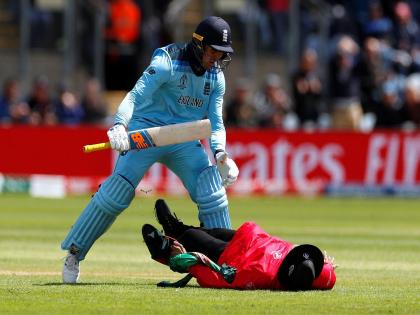 जेसन रॉयचे वन डे क्रिकेटमधील हे 9वे शतक ठरले, तर वर्ल्ड कपमधील पहिलेच. बांगलादेशविरुद्धही त्यानं प्रथमच शतकी खेळी केली. पण रॉयच्या धडकेनं स्टेडियमवर एकच हास्यकल्लोळ झाला.