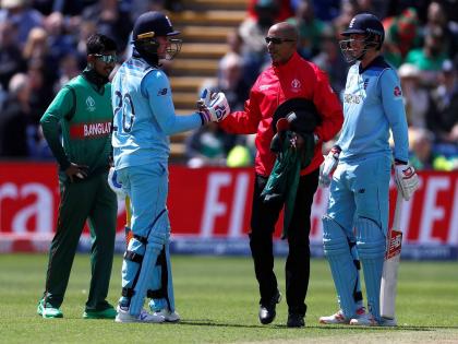कार्डीफ, आयसीसी वर्ल्ड कप 2019 : पाकिस्तानविरुद्धचा पराभव विसरून नव्या दमानं मैदानावर उतरलेल्या इंग्लंड संघाने शनिवारी बांगलादेशच्या गोलंदाजांची दैना उडवली. 2011 व 2015 मध्ये बांगलादेशनं वर्ल्ड कप स्पर्धेत इंग्लंडला पराभवाची चव चाखवली होती आणि 2019मध्येही त्यांच्याकडून अशाच कामगिरीची अपेक्षा आहे. पण, इंग्लंडचे सलामीवीर जेसन रॉय आणि जॉनी बेअरस्टो यांनी बांगलादेशच्या गोलंदाजांना हैराण केले. या जोडीनं पहिल्या विकेटसाठी 128 धावांची भागीदारी केली. बेअरस्टो अर्धशतक झळकावून माघारी परतला, पण रॉयनं खिंड लढवताना शतक ठोकलं. शतकी धाव घेत असताना रॉयनं चुकीनं पंचांना धडक मारली.