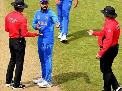 DRS गमावल्यानंतर कोहलीला राग अनावर झाला आणि त्याने पंचांशी हुज्जत घालायला सुरुवात केली. कोहलीचे हे वागणं वारंवार दाखवण्यात आले. वर्ल्ड कप स्पर्धेत कोहलीचा असा प्रताप दुसऱ्यांदा पाहायला मिळाला. अफगाणिस्तानविरुद्धच्या सामन्यात गरजेपेक्षा अधिक अपील केल्यामुळे त्याला मॅच फीमधील 25 टक्के रक्कम दंड म्हणून भरावी लागली होती. सप्टेंबर 2016 नंतर नवीन नियमावली जाहीर झाल्यानंतर कोहलीकडून असे दुसऱ्यांदा घडले. जानेवारी 2018 मध्ये दक्षिण आफ्रिकेविरुद्धच्या सामन्यात त्याने पंचांशी वाद घातला होता आणि त्यासाठी त्याला दोन डीमेरिट गुण देण्यात आले होते.