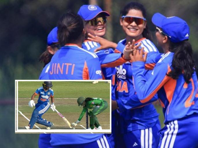 IND A vs PAK A Women's Rising Stars Asia Cup 2026 : टी-२० वर्ल्ड कप स्पर्धेतील कोलंबो येथील आर. प्रेमदासा स्टेडियमवर रंगणाऱ्या भारत-पाक यांच्यातील हाय व्होल्टेज लढती आधी राधा यादवच्या नेतृत्वाखालील भारतीय रणरागिणींनी बँकाँकच्या मैदानात पाकिस्तानचा करेक्ट कार्यक्रम केला आहे. महिला राइजिंग स्टार्स आशिया कप २०२६ स्पर्धेतील सामन्यात पाकिस्तानच्या संघाने नाणेफेक जिंकून पहिल्यांदा फलंदाजी करण्याचा निर्णय घेतला होता. कर्णधार राधा यादव आणि प्रेमा रावतशिवाय सायमानं प्रत्येकी २-२ विकेट्स घेत पाकिस्तानी महिला 'अ' संघाचा डाव अवघ्या ९३ धावांत आटोपला होता. या धावसंख्येचा पाठलाग करताना वृंदा दिनेश हिच्या नाबाद अर्धशतकाच्या जोरावर भारतीय महिला 'अ' संघाने ८ विजय राखून दणदणीत विजय नोंदवत या स्पर्धेतील पहिल्या विजयाची नोंद केली.