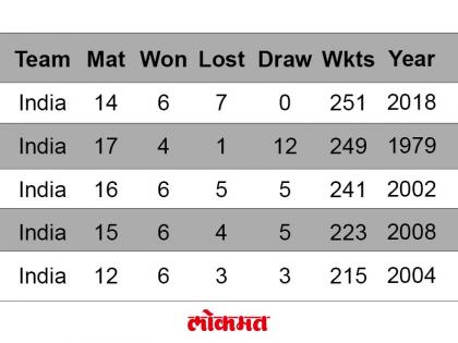 ऑस्ट्रेलिया दौऱ्यातही भारतीय गोलंदाजांनी ही लय कायम राखली आहे. बॉक्सिंग डे कसोटीच्या तिसऱ्या दिवशी गोलंदाजांनी ऑस्ट्रेलियाचे 6 फलंदाज 102 धावांवर माघारी पाठवले. या कामगिरीने त्यांनी 2018 मध्ये 251 विकेट्स घेण्याचा पराक्रम केला. 1979 नंतर प्रथमच भारतीय गोलंदाजांनी एका वर्षात सर्वाधिक विकेट घेतल्या आहेत. 39 वर्षांपूर्वी भारतीय गोलंदाजांनी 249 विकेट घेतल्या होत्या. तो विक्रम 2018मध्ये मोडला गेला.