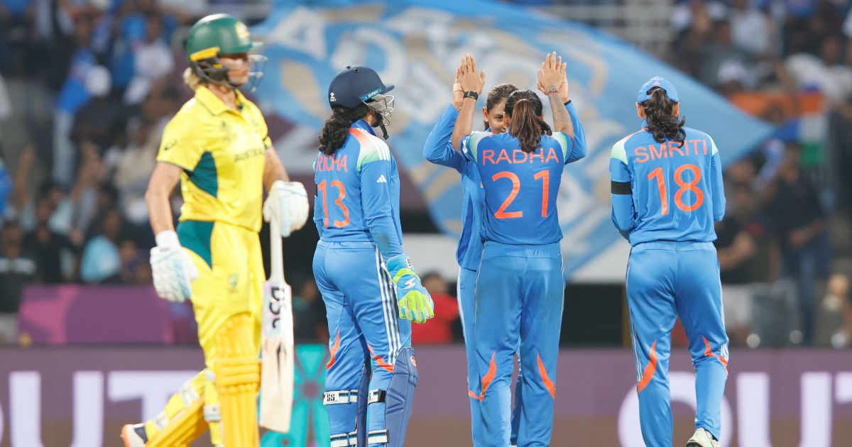 त्यानंतर श्री चरणीनं आपल्या फिरकीतील जादू दाखवताना बेथ मूनी २४ (२२) आणि ॲनाबेल सदरलँड ३ (६) यांना स्वस्तात माघारी धाडले. राधा यादवनं एलिसा पेरीला ७७ धावांवर पॅव्हेलियनमध्ये धाडले . अखेरच्या षटकात गार्डनर भारतीय गोलंदाजांवर तुटून पडली. ऑस्ट्रेलिया संघ धावफलकावर ३५० पेक्षा अधिक धावा करेल, असेच चित्र निर्माण झाले होते. पण ती ४५ चेंडूत ६३ धावांवर धावबाद होऊन परतली. ऑस्ट्रेलियन संघाचा डाव ३३८ धावांच आटोपला. अखेरच्या षटकात दीप्तीनं बॅक टू बॅक दोघींना तंबूत धाडल्यावर रनआउटच्या रुपात ऑस्ट्रेलियाला १० वा धक्का दिला.