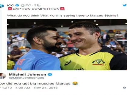 जॉन्सनने या आयसीसीच्या पोस्टला फोटोओळ लिहिली आहे. जॉन्सनने लिहीले आहे की, " कोहलीने स्टॉइनिसला यावेळी तुझे एवढे मोठे मसल्स कसे झाले, असे विचारले असावे. "