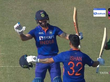 India vs Bangladesh, 3rd ODI Live Updates: रोहित शर्मा दुखापतीमुळे मालिकेबाहेर गेला नसता तर इशान किशनला ( Ishan Kishan) संधी मिळाली नसती अन् आज ज्या पद्धतीने तो खेळला ती फटकेबाजीही पाहता आली नसती. इशानने आज मिळालेल्या संधीचं सोनं केलं अन् सर्वात जलद द्विशतक झळकावले. इशानच्या विक्रमी कामगिरीनंतर विराट कोहलीनेही (Virat Kohli) शतक पूर्ण करताना १२०० दिवसांचा वन डे शतकाचा दुष्काळ संपवला. भारतीयांनी दोन सामन्यांतील पराभवाची आज व्याजासकट वसूली केली. विराट - इशान यांनी दुसऱ्या विकेटसाठी २९० धावांची विक्रमी भागीदारी करताना भारताला ४०० पार पल्ला पार करून दिला.