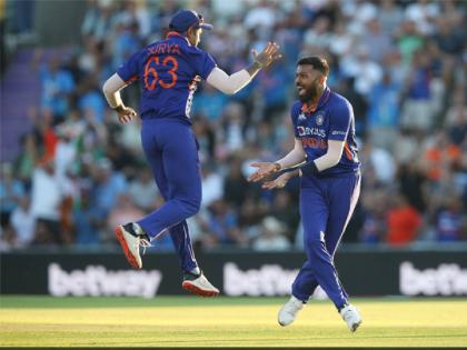 हार्दिकने पुन्हा एक विकेट घेताना सॅम कुरनला ( ४) बाद केले. इंग्लंडचा पराभव इथेच निश्चित झाला होता. हार्दिकने ४ षटकांत ३३ धावा देताना ४ विकेट्स घेतला. ट्वेंटी-२०त एकाच सामन्यात ५०+ धावा व ४ विकेट्स घेणारा हार्दिक हा पहिला भारतीय आणि जगातील पाचवा खेळाडू ठरला. ड्वेन ब्राव्हो ( ६६* व ४-३८ वि. भारत, लॉर्ड्स २००९), मोहम्मद हाफिज ( ७१ व ४-१० वि. झिम्बाव्बे, हरारे २०११), शेन वॉटसन ( ५९ व ४-१५ वि. इंग्लंड, एडलेड २०११) व एस शिनवारी ६१ व ४-१४ वि. इंग्लंड, साउदहॅम्प्टन २०२२) यांनी ही कामगिरी केली आहे. तसेच इंग्लंडमध्ये दोनवेळा एकाच ट्वेंटी-२०त चार विकेट घेणाराही तो पहिलाच भारतीय ठरला. यापूर्वी २०१८मध्ये त्याने ३८ धावांत ४ विकेट्स घेतल्या होत्या.