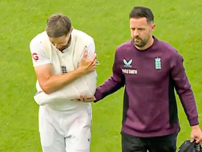 India vs England Chris Woakes Out Of Final Test Following Shoulder Injury : भारत आणि इंग्लंड यांच्यातील पाच सामन्यांच्या कसोटी मालिकेतील अखेरचा कसोटी सामना लंडन येथील ओव्हलच्या मैदानात सुरु आहे. पहिल्या दिवसाच्या खेळात एक धाव वाचवण्याच्या प्रयत्नात क्रिस वोक्सला दुखापत झाली होती. त्याने चौकार वाचवला, पण एक धाव वाचवण्याचा हा प्रयत्न जलदगती गोलंदाजासह इंग्लंडच्या संघाला मोठा धक्का देणारा ठरलाय. कारण हा गोलंदाज आता उर्वरित सामन्यात खेळणार नाही. ECB क्रिकेट बोर्डानं एक्स अकाउंटवरून तो फायनल कसोटी सामन्यातून आउट झाल्याची माहिती दिली आहे.