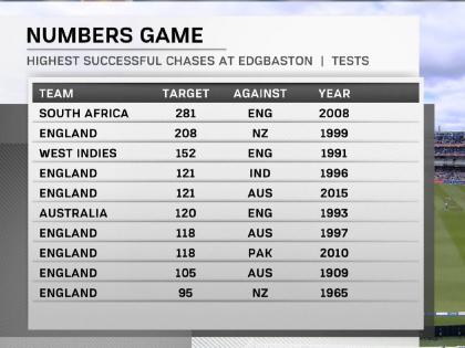 भारताच्या ४ बाद १६७ धावा झाल्या आहेत आणि त्यांच्याकडे २९९ धावांची आघाडी घेतली आहे. एडबस्टन येथे आतापर्यंत चौथ्या डावात २८१ धावांचे यशस्वी लक्ष्य दक्षिण आफ्रिकेने पार केले होते. त्यामुळे आता इथून भारताला नमवणे इंग्लंडसाठी अवघड आहे.