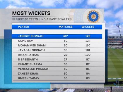 टीम इंडियाच्या पहिल्या डावातील ४१६ धावांचा पाठलाग करताना दुसऱ्या दिवसअखेर इंग्लंडचा निम्मा संघ ८४ धावांवर माघारी परतला होता. अॅलेक्स लीज ( ६), झॅक क्रॅवली ( ९) व ऑली पोप ( १०) यांना बुमराहने बाद केले. त्यानंतर मोहम्मद सिराजने महत्त्वाची विकेट घेताना जो रूटला ६७ चेंडूंत ३१ धावांवर बाद केले. मोहम्मद शमीने नाईट वॉचमन जॅक लिचला ( ०) माघारी पाठवले. बुमराहने या तीन विकेट्स घेत भारताकडून पहिल्या ३० कसोटींत १२६ विकेट्सचा विक्रम नावावर केला. कपिल देव १२४ विकेट्सह अव्वल स्थानावर होते. कपिल देव यांच्या नावावर कसोटी क्रिकेटमध्ये ४३४ विकेट्स व ५२४८ धावा आहेत. १९८३ साली त्यांच्या नेतृत्वाखाली भारताने पहिला वर्ल्ड कप जिंकला.
