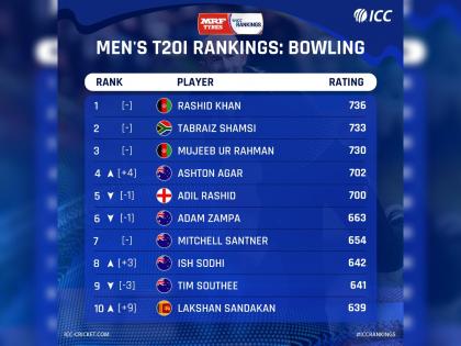 गोलंदाजांमध्ये ट्वेंटी-20 क्रमवारीत टॉप टेनमध्ये एकही भारतीय गोलंदाज नाही. ऑस्ट्रेलियाच्या अॅश्टन अॅगरन चार स्थानांची झेप घेताना चौथ्या क्रमांकावर आला आहे.