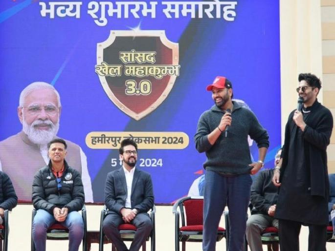 हिटमॅनची जोरदार बॅटिंग पाचव्या कसोटीपूर्वी ५ मार्च रोजी कर्णधार रोहित आणि प्रशिक्षक राहुल द्रविड यांनी क्रीडा मंत्री अनुराग ठाकूर यांच्या उपस्थितीत हिमाचल प्रदेशमधील बिलासपूर येथे 'संसद खेल महाकुंभ' येथील कार्यक्रमाला हजेरी लावली. यावेळी क्रीडामंत्र्यांसह टीम इंडियाचा कर्णधार आणि प्रशिक्षक यांच्या हस्ते खेल महाकुंभच्या जर्सीचेही प्रकाशन करण्यात आले. यावेळी उद्घाटन समारंभाचे सूत्रसंचालन करणाऱ्या अपारशक्ती खुरानाने भारतीय कर्णधार रोहित शर्माला काही भन्नाट प्रश्न विचारले. स्टम्प माईकमध्ये टिपलेल्या संभाषणात तू म्हणाला होता की, एकदा अम्पायरने तुला धाव दिली नव्हती, तो चेंडू बॅटला लागला होता अशी तू मागणी केली होतीस... खुरानाने हा प्रश्न विचारताच उपस्थितांमध्ये एकच हशा पिकला.