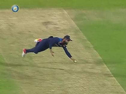 India vs England, 3rd ODI, Pune: भारतीय संघानं इंग्लंड विरुद्धच्या एकदिवसीय मालिकेतील निर्णायक सामन्यात इंग्लंडसमोर विजयासाठी ३३० धावांचं आव्हान ठेवलं आहे. प्रत्युत्तरात इंग्लंडच्या फलंदाजांना खेळणं खूप कठीण जात असल्याचं दिसून येत आहे. भारताचा कर्णधार विराट कोहलीनं फलंदाजीत काही खास योगदान दिलेलं नसलं. तरी क्षेत्ररक्षणात कोहलीनं सर्वांचं लक्ष वेधून घेतलं आहे.