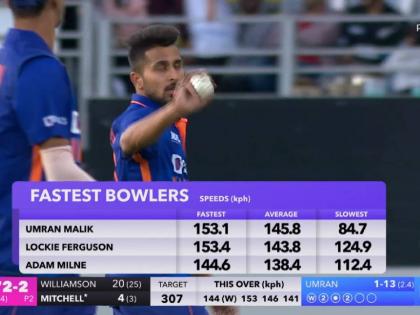 प्रत्युत्तरात न्यूझीलंडने सावध खेळ केला. फिन अॅलन व डव्हॉन कॉनवे ही जोडी विकेट टिकवून खेळत होती. त्यात युजवेंद्र चहलने फिनला जीवदान दिले, परंतु शार्दूल ठाकूरने त्याच षटकात फिनला ( २२) माघारी जाण्यास भाग पाडले. त्यानतर उम्रान मलिकने कमाल केली. वेगवान मारा करताना त्याने किवी फलंदाजांची बोलती बंद केलीच, शिवाय दोन धक्के देत दडपणही निर्माण केले. उम्रानने किवींचा सलामीवीर कॉनवे ( २४) आणि डॅरील मिचेल ( ११) यांची विकेट घेतली. त्याने आजच्या सामन्यात १५३kmph वेगवान चेंडू टाकला.