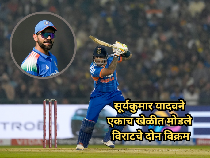 सूर्यकुमारने टी-२० आंतरराष्ट्रीय क्रिकेटमध्ये धावांचा पाठलाग करताना सर्वाधिक षटकार मारणारा विराट कोहलीला मागे टाकत दुसरा भारतीय खेळाडू बनला आहे. या फॉरमॅटमध्ये पाठलाग करताना कोहलीने ४८ डावांमध्ये ५३ षटकार मारले आहेत. तर, सूर्यकुमारने आतापर्यंत ३६ डावांमध्ये ५४ षटकार मारले आहेत. रोहित शर्मा या यादीत अव्वल स्थानावर आहे, त्याने टी२० मध्ये पाठलाग करताना ७४ षटकार मारले आहेत. शिवाय, तो न्यूझीलंडविरुद्धच्या टी-२० मध्ये भारतीय कर्णधार म्हणून सर्वाधिक धावा करणारा फलंदाज बनला आहे. यापूर्वी, हा विक्रम विराट कोहलीच्या नावावर होता, ज्याने २०१७ मध्ये ४२ चेंडूत ६५ धावांची खेळी केली होती.
