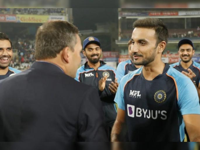 हर्षल पटेलला माजी गोलंदाज अजित आगरकर याच्याकडून पदार्पणाची कॅप देण्यात आली. अनिल कुंबळे यांनी त्यांच्या प्रशिक्षकपादाच्या कार्यकाळात पदार्पणवीराला माजी खेळाडूंच्या हस्ते कॅप देण्याची प्रथा सुरू केली होती. पण, शास्त्री व कोहली यांच्या कार्यकाळात त्यात खंड पडला अन् आज द्रविडनं ती पुन्हा सुरू केली, असे  सुनील गावस्कर समालोचन करताना म्हणाले.