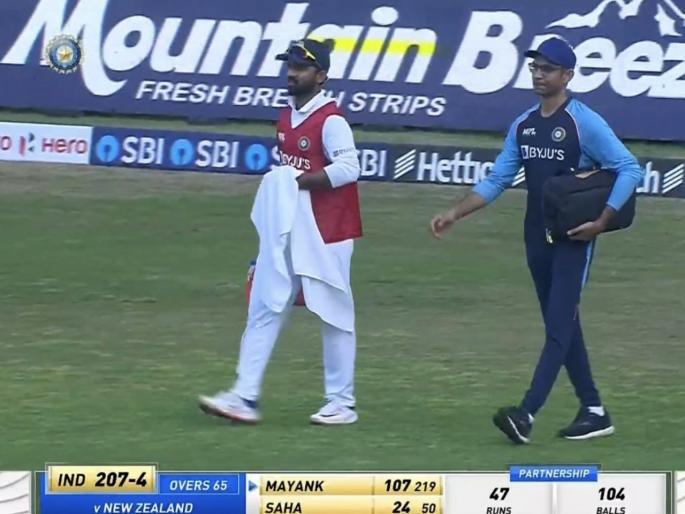 IND vs NZ, 2nd Test Live Update : मयांक अग्रवालच्या शतकाच्या जोरावर भारतीय संघानं दुसऱ्या कसोटीच्या पहिल्या दिवसावर वर्चस्व गाजवलं. १२ वाजता सुरू झालेल्या या सामन्यात विराट कोहलीचे पुनरागमन झालं आणि नाणेफेक जिंकून त्यानं प्रथम फलंदाजीचा निर्णय घेतला. मयांक व शुबमन गिल या जोडीनं पहिल्या विकेटसाठी ८० धावा जोडल्या. पण, न्यूझीलंडच्या अजाझ पटेलनं याच धावसंख्येवर टीम इंडियाला तीन धक्के दिले. मयांक व श्रेयस अय्यरनं अर्धशतकी खेळ करून गाडी रुळावर आणली अन् त्यानंतर मयांकनं शतक पूर्ण केलं. या सामन्यात भारतानं तीन बदल केले, त्यापैकी एक बदल हा उप कर्णधार अजिंक्य रहाणे याचा होता.