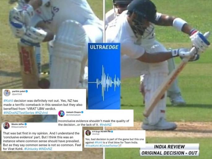 India vs New Zealand, 2nd Test Live Update : टीम इंडियाचा कर्णधार विराट कोहली ( Virat Kohli) याची विकेट हा दुसऱ्या कसोटीच्या पहिल्या दिवसातील चर्चेचा विषय ठरला आहे. अजाझ पटेलच्या गोलंदाजीवर विराटला LBW दिले गेले, तिसऱ्या अम्पायरलाही नेमकं काय झालं ते कळलं नाही आणि त्यानं मैदानावरील अम्पायरचा निर्णय कायम राखला. चेंडू आधी पॅडला लागला की बॅटला यावरून तिसरा अम्पायर गोंधळला. पण, त्याच्या निर्णयानंतर सोशल मीडियावर त्याची जोरदार धुलाई झाली. पार्थिव पटेल, वासीम जाफर यांच्यासह बॉलिवूड अभिनेते परेश रावल यांनीही अम्पायरच्या निर्णयावर टीका केली.