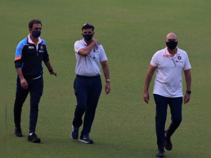 द्रविडसह फलंदाजी प्रशिक्षक विक्रम राठोड व गोलंदाजी प्रशिक्षक पारस म्हाम्ब्रे हेही होते. त्यांनी क्युरेटर सुजन मुखर्जी यांच्याशी संवाद साधला. या खेळपट्टीवर 160+ धावा होतील अशी माहिती मुखर्जी यांनी दिली.