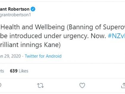 ग्रँट यांनी एक मजेशीर ट्विट केले आहे. यामध्ये त्यांनी म्हटले आहे की, "मानसिक स्वास्थ्य आणि चांगल्या गोष्टींसाठी (सुपर ओव्हरवर बंदी) आपातकालीन स्थितीतही ठराव दाखवले जातील. (हा, केन विल्यमसनने दमदार खेळी साकारली.)"