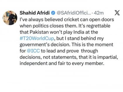 "जेव्हा राजकारणामुळे चर्चेची दारं बंद होतात तेव्हा क्रिकेटमुळे ही दारं उघडू शकतात असं मला नेहमी वाटायचं. पाकिस्तानचा संघ टी२० वर्ल्डकपमध्ये भारताविरूद्ध खेळणार नाही हा निर्णय पश्चात्ताप करण्यासारखा आहे, पण मी माझ्या सरकारच्या निर्णयामागे ठाम उभा आहे. आयसीसी ही संस्था नि:पक्षपाती, स्वतंत्र आणि सर्व सदस्यांसाठी समान असल्याचे सिद्ध करण्याची आणि मोठे निर्णय घेण्याची संधी या प्रकरणात आयसीसीकडे आहे," असे शाहिद आफ्रिदीने आपल्या ट्विटमध्ये म्हटले आहे.