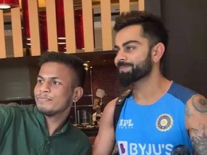 गुवाहाटी येथील शांतीपूर येथील राहुल राय ( Rahul Rai) या युवकाने विराटसोबत सेल्फी काढण्यासाठी २३ हजार रुपये मोजले. गुवाहाटी एअरपोर्टवर सुरक्षारक्षकांनी त्याला विराटसोबत सेल्फी काढण्यापासून रोखले होते आणि त्यानंतर त्याने टीम इंडिया ज्या हॉटेलमध्ये थांबलीय तेथे रुम बुक केला. दुसऱ्याच दिवशी त्याची कोहलीशी भेट झाली आणि ब्रेकफास्ट करताना सेल्फीही घेतली. २९ सप्टेंबरला भारतीय खेळाडू गुवाहाटीत दाखल झाले आणि त्यावेळी राहुल सेल्फी घेण्याचा प्रयत्न केला. पण, सुरक्षा रक्षकांनी त्याला हटकले.