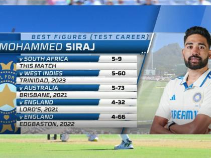 दक्षिण आफ्रिकेची घरच्या मैदानावरील पहिल्या डावातील ही तिसरी निचांक कामगिरी ठरली. १९९९ मध्ये इंग्लंडविरुद्ध त्यांचे ४ फलंदाज २ धावांत, २००१ मध्ये श्रीलंकेविरुद्ध ४ फलंदाज १३ धावांत माघारी परतले होते. त्याआधी १८८९मध्ये इंग्लंडविरद्ध १६ धावांत ४ विकेट्स पडल्या होत्या. सिराज एक्स्प्रेस इथेच थांबली नाही आणि त्याने डेव्हिड बेडिंगहॅम ( १२) व मार्को यानसेन ( ०) यांचा अडथळा दूर करताना आफ्रिकेची अवस्था ६ बाद ३४ अशी केली. त्यात कायले वेरेयने ( १५) याच्या विकेटची भर पडली. सिराजने त्याच्या ८.५ षटकांत १५ धावा देताना ६ विकेट्स घेतल्या. ही त्याची सर्वोत्तम कामगिरी ठरली.